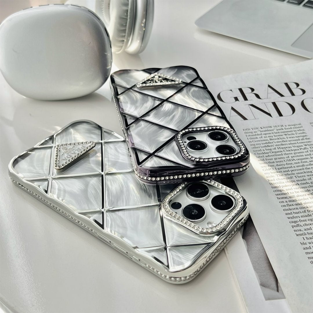 閃亮的普拉達鑽石絎縫蘋果iPhone手機殼